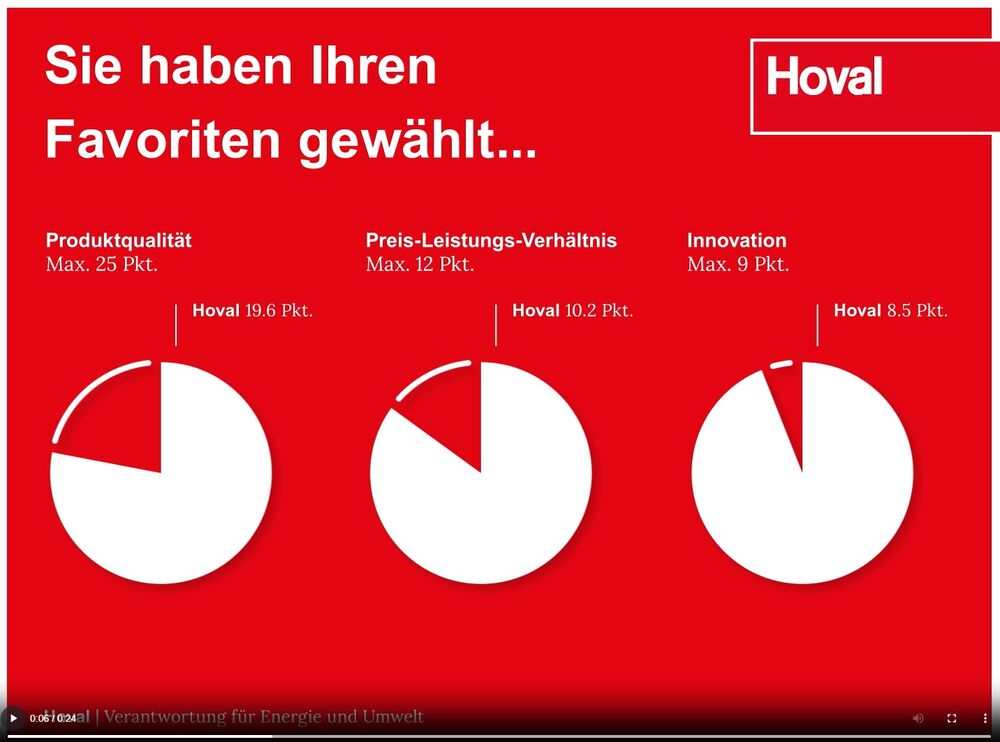 Die Architekten und Planer honorierten die überzeugende Arbeit von Hoval AG Schweiz im Bereich Haustechnik mit einem 1. Platz in allen 5 zur Auswahl stehenden Bereichen: